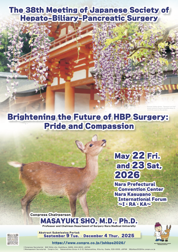 第 38 屆 JSHBPS 年會將於 2026 年 5 月 22 日至 23 日 在日本奈良舉行。